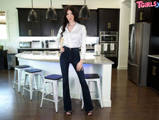 Ava Holt is back and looking amazing as she gets naughty in the kitchen. She looks sweet in her cute top and jeans but taking that off and she is a milky skin beauty that wants to take her hard tgirl cock out of those panties and have some fun.