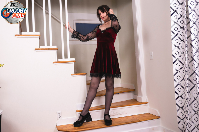 Faye Lockwood is back on Grooby Girls in this cute dress and teases us in her pantyhose as those lovely feet make an appearance. All this before she opens those legs and sticks her toys up her amazing tight tgirl booty.