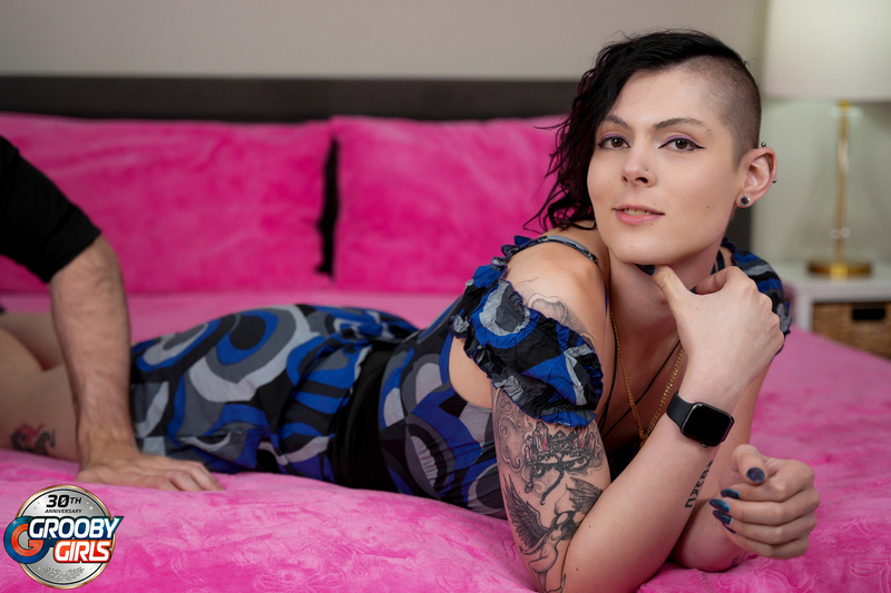 Lady Jadalyn our sexy alternative trans hottie is back on Grooby Girls in her 3rd scene for the site but her first hardcore. She looks incredible and she knows how to get naughty. Taking off that dress so this horny guy named Chris can get his face in her ass and then replace it with his bareback cock.