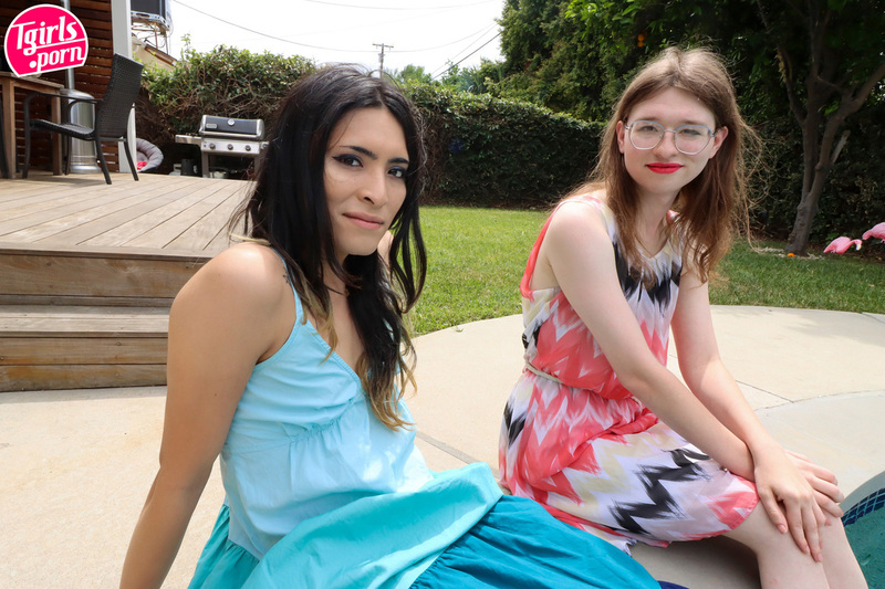 Pixie Pond and Holly Day are two stunning cuties out by the pool but they soon find themselves in some hot lesbian hardcore as they both star in Tgirls Porn for the first time. A sweet bareback and sucking scene with two rising sexy stars.