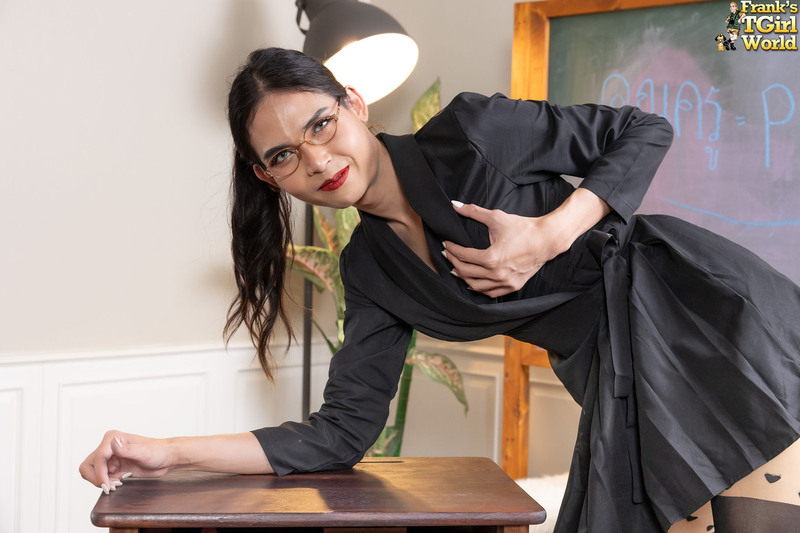 Ploy is back in this fun role-play cosplay where she is your personal teacher and she has something big and hard to discipline you. She is a doll and this sexy Bangkok Ladyboy is not only sweet and beautiful but she has got a massive thick cock. Between you and me she loves to use it, hope you are ready for it.