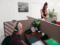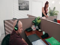 Aerie Rei has not had a release in ages and after a few hours of work she just can't take it anymore. Stroking her hard cock under that skirt while working at her cubicle and her coworker takes notice. He can't resist even though this is against company policy and soon finds her sucking his hard cock and riding him bareback.
